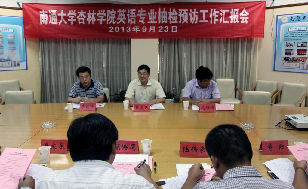 9月23日,江苏省教育评估院副院长袁益民、主任孔祥沛、李峻峰三人预访小组来我院进行英语专业建设抽检预访。南通大学副校长、杏林学院副理事长周建忠对预访小组来院指导工作表示热烈的欢迎及感谢。抽检工作预访会议于当天下午在钟秀校区综合楼305会议室举行。杏林学院、外国语学院部分领导、各职能部门负责人、英语专业负责人、部分教师代表及相关教学管理人员参加会议。康卫东副院长主持会议。
