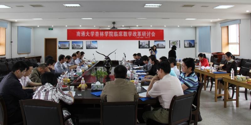 5月21日至22日,南通大学杏林学院2011年临床教学改革研讨会在南京江北人民医院召开。研讨会由我院副院长沐仁旺主持,无锡第三人民医院、泰州市人民医院、南京江北人民医院和江阴市人民医院的内科、外科、儿科、妇产科主任,南通大学医学院、附属医院临床教学管理科主任周庆,我院院长倪衡建、医学部主任马济仁,教务处副处长潘志勇、奚汉清及相关工作人员参加会议。