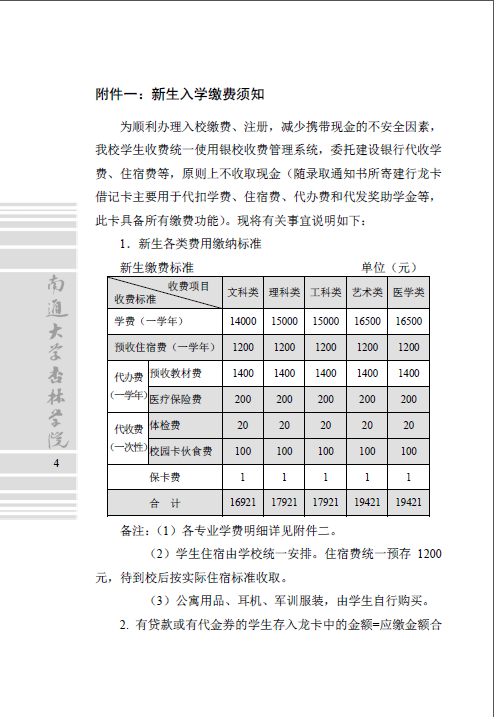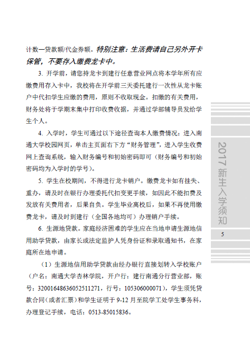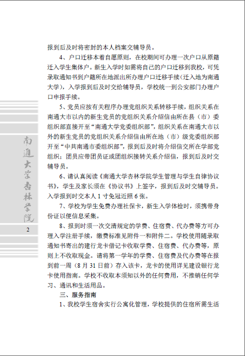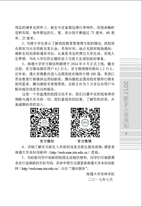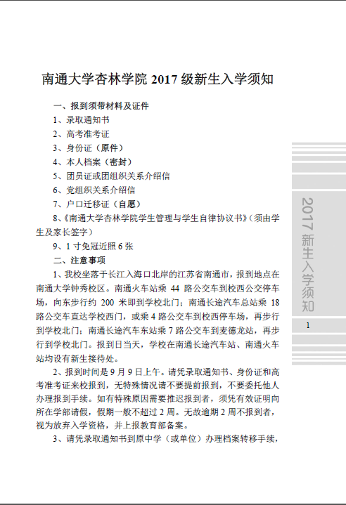 南通大学杏林学院2017级新生入学须知