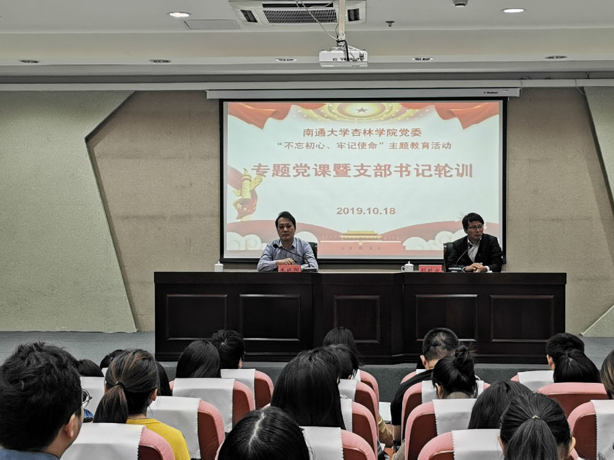 10月18日下午,学院党委在启东校区开展“不忘初心、牢记使命”主题教育专题党课暨支部书记轮训活动。院党委书记朱晓阳出席活动并上专题党课。院党委副书记、副院长刘时方主持活动。