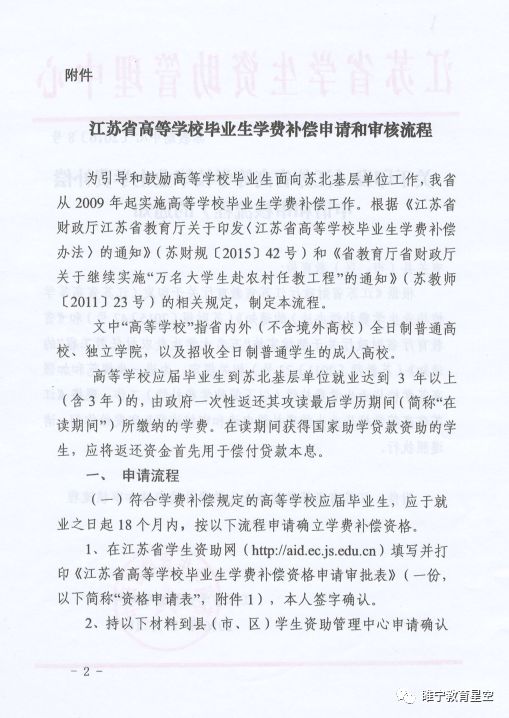 江苏省高等学校毕业生学费补偿申请和审核流程
