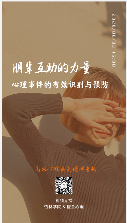 为提高我院学生对心理问题的识别能力,增强学生对心理问题的预防意识,6月3日下午15点,学院组织6000余名学生齐聚橙全心理网络直播平台,共同观看了“朋辈互助的力量—心理事件的有效识别与预防”公益直播讲座。本次讲座由国家二级心理咨询师杨波老师主讲。