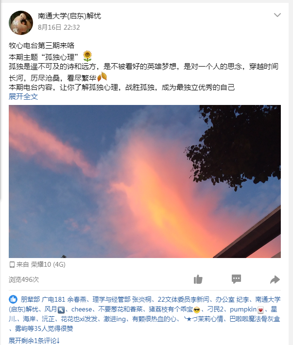 活动中,队员们积极参与,以精神饱满的状态去组织每场电台的进行,多次召开线上会议及时解决电台广播过程中出现的问题,确保每场电台顺利结束。同学们也踊跃投稿,分享他们生活当中的喜怒哀乐,而我们从他人的角度看待自身问题,由他人的故事体验人生百态。