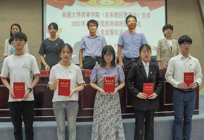 6月23日中午,我院(启东校区管委会)党委在启东校区图书馆报告厅举行2021年上半年党校培训班结业典礼暨入党宣誓仪式。