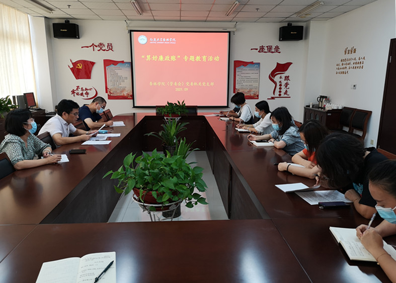 9月22日下午,学院(启东校区管委会)机关党支部召开支部大会,组织全体党员开展“算好廉政帐”专题教育活动。会议由机关党支部书记陈龙主持。