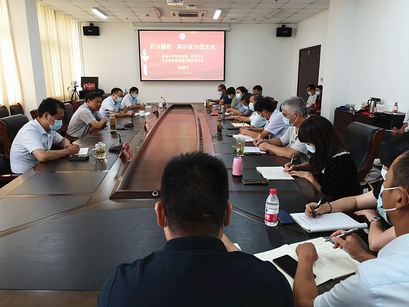 10月7日上午,校党委常委、纪委书记、省监委派驻南通大学监察专员陆国平到启东校区为学院(启东校区管委会)党员干部作“算好廉政帐”专题教育讲座。