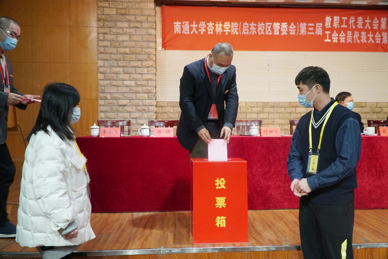 学院(启东校区管委会)党委书记贲智勤主持会议。学院(启东校区管委会)第三届教职工代表大会和第三届工会会员代表大会正式代表、列席代表、特邀代表及相关职能部门负责人参加会议。