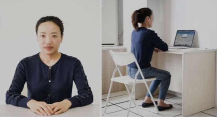 四、要求学生采用“双机位”模式考试,主机位采用与在校生相同的考试平台接收试卷及正面监考,辅机位(用于侧后方监考)连接另一考试平台,比如钉钉。主机位(主镜头)和辅机位(辅镜头)标准示例照片如图 1所示。拍摄画面需覆盖:考生全身双手始终可见、主机位设备屏幕、考生周围环境、以及考生考试全过程。