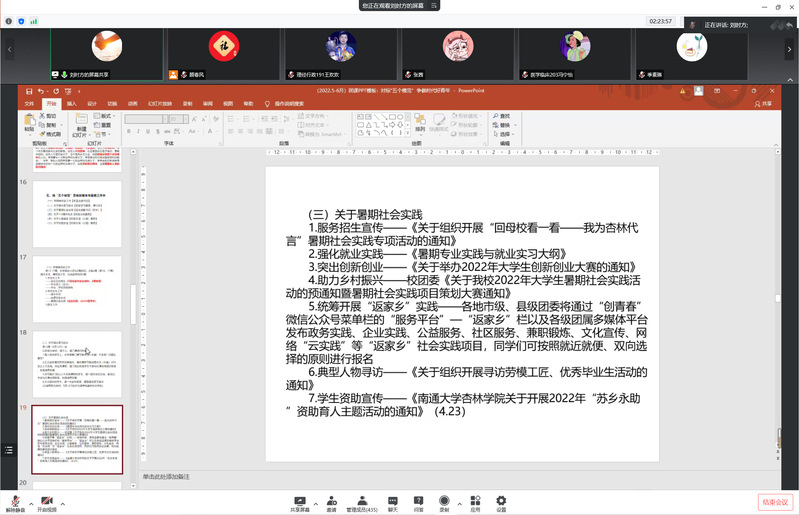 5月13日中午,学院采取网络在线方式召开共青团工作会议,专题部署学生主题教育和暑期社会实践前期准备工作。