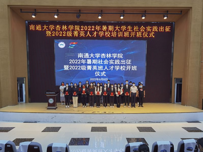 6月8日下午,我院2022年暑期大学生社会实践活动出征暨2022级菁英人才学校开班仪式在启东校区大学生活动中心报告厅举办。