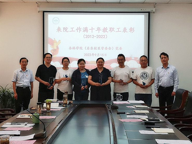 9月15日,学院(启东校区管委会)召开表彰会,对2012年来院且工作满十年的教职工进行现场表彰。