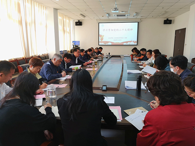 围绕二十大会议主题、重要意义、几个关键词等方面,朱晓阳领学了党的二十大精神、党的二十届一中全会精神。结合学院实际,就如何进一步落实好学习贯彻党的二十大精神,朱晓阳提出三点工作要求:一是加强领导、统筹谋划,确保从党委到各支部,迅速在全院兴起学习贯彻的热潮。二是以党支部、以学部(学系)为单位,组织全体教职工开展形式多样的学习会。三是注重融会贯通,聚焦主责主业,切实抓好学用结合。