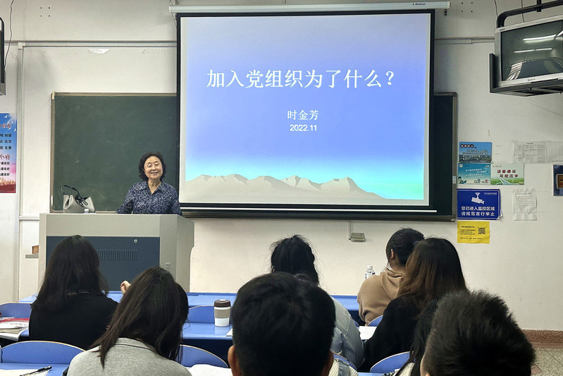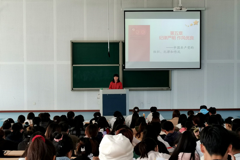 时金芳以“端正动机,以实际行动早日加入党组织”为主题,用思考题的形式帮助同学们认识到端正入党动机的重要性,带领同学们深刻理解共产党员的崇高使命。