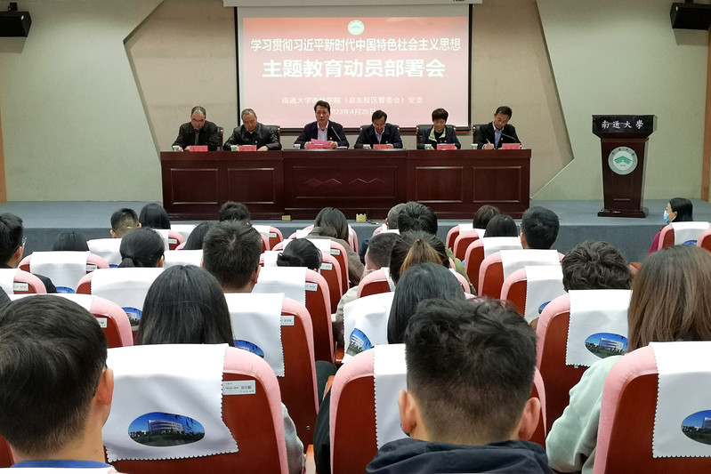 4月25日下午,学院(启东校区管委会)党委召开学习贯彻习近平新时代中国特色社会主义思想主题教育动员部署会暨学院党委理论学习中心组会议。