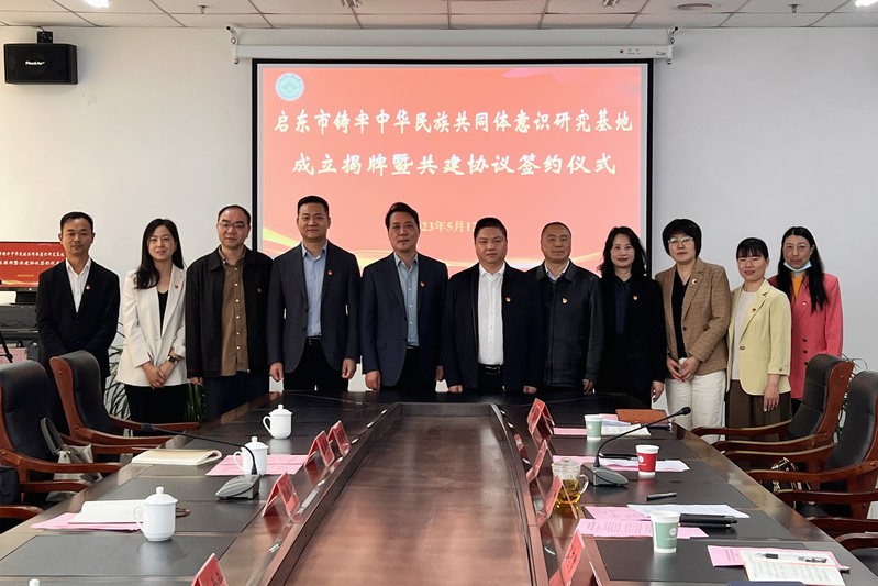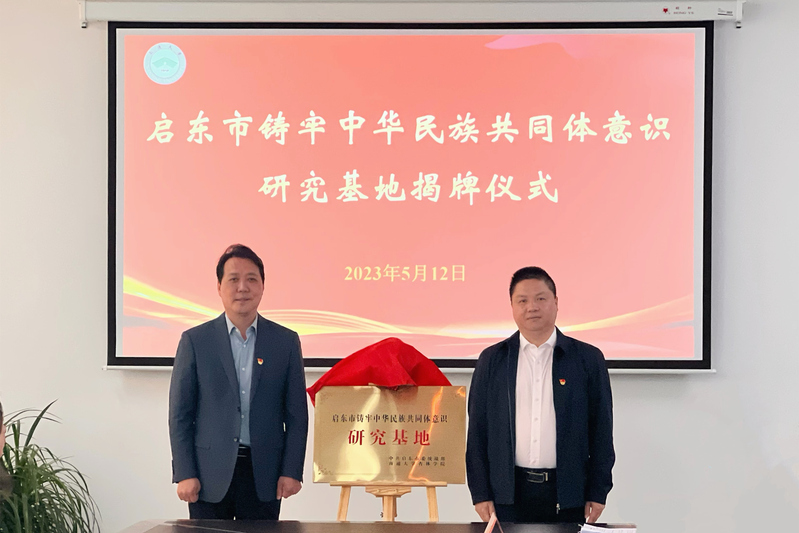 仪式上,朱晓阳与刘锦华共同为“启东市铸牢中华民族共同体意识研究基地”揭牌,并签订项目共建合作协议。