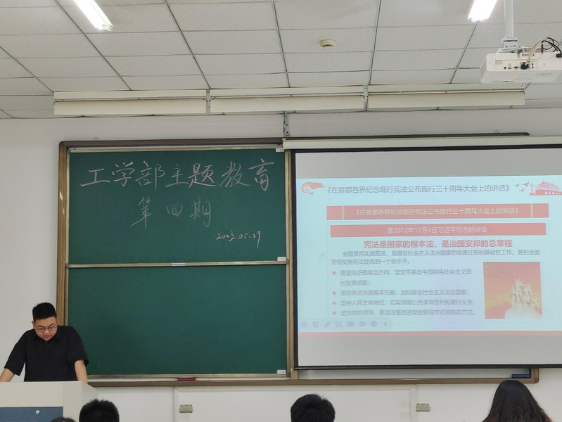 为深入把握习近平新时代中国特色社会主义思想。5月29日下午,工学部各学生党支部于JX5-6-109召开学习贯彻习近平新时代中国特色社会主义思想主题教育的第四期学习,本次学习由孔翼城同学主持,工学部学生党员和预备党员参加。