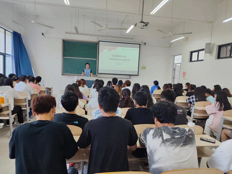 为保证酒店管理专业酒店综合实习质量、提高实习效果,6月21日上午,我院在启东校区召开2021级酒店管理专业岗位实习动员大会,学院教务处相关人员、专业实习指导老师和2021级酒店管理专业86名学生参加会议。