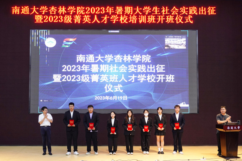 学院(启东校区管委会)党委副书记、副院长刘时方为2022级菁英人才学校培训班优秀学员颁发证书,为2023级菁英人才学校培训班授班旗,并为入选全国立项的7支暑期社会实践团队授旗。他对组织开展好暑期社会实践和菁英人才学校培训提出五点要求:一是深化理论武装,在与实际相结合中做习近平新时代中国特色社会主义思想的坚定信仰者和忠实践行者;二是强化就业实践,结合不同专业和年级特点不断深化职业认知实践、专业实践和就业实习;三是突出创新创业实践,按照“五个一”要求持续培养勤学、钻研精神;四是积极开展返家乡实践,在社会大课堂中强素质、塑形象;五是牢固树立安全意识,确保暑期平安和谐。