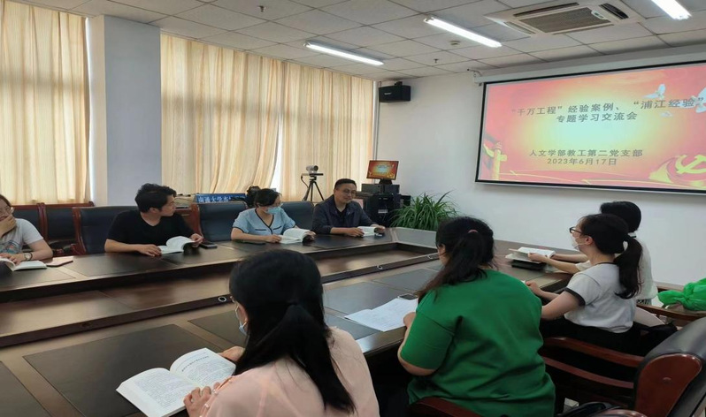 6月17日,我院人文学部教工第二党支部组织党员教师开展“千万工程”经验案例、“浦江经验”专题学习交流会,带领教师们学习贯彻习近平总书记两个重要批示精神,帮助党员教师切实增强政治责任感,坚持深学细悟,准确把握蕴含其中的理论精髓、科学内涵和实践要求,更好武装头脑、指导实践、推动工作。