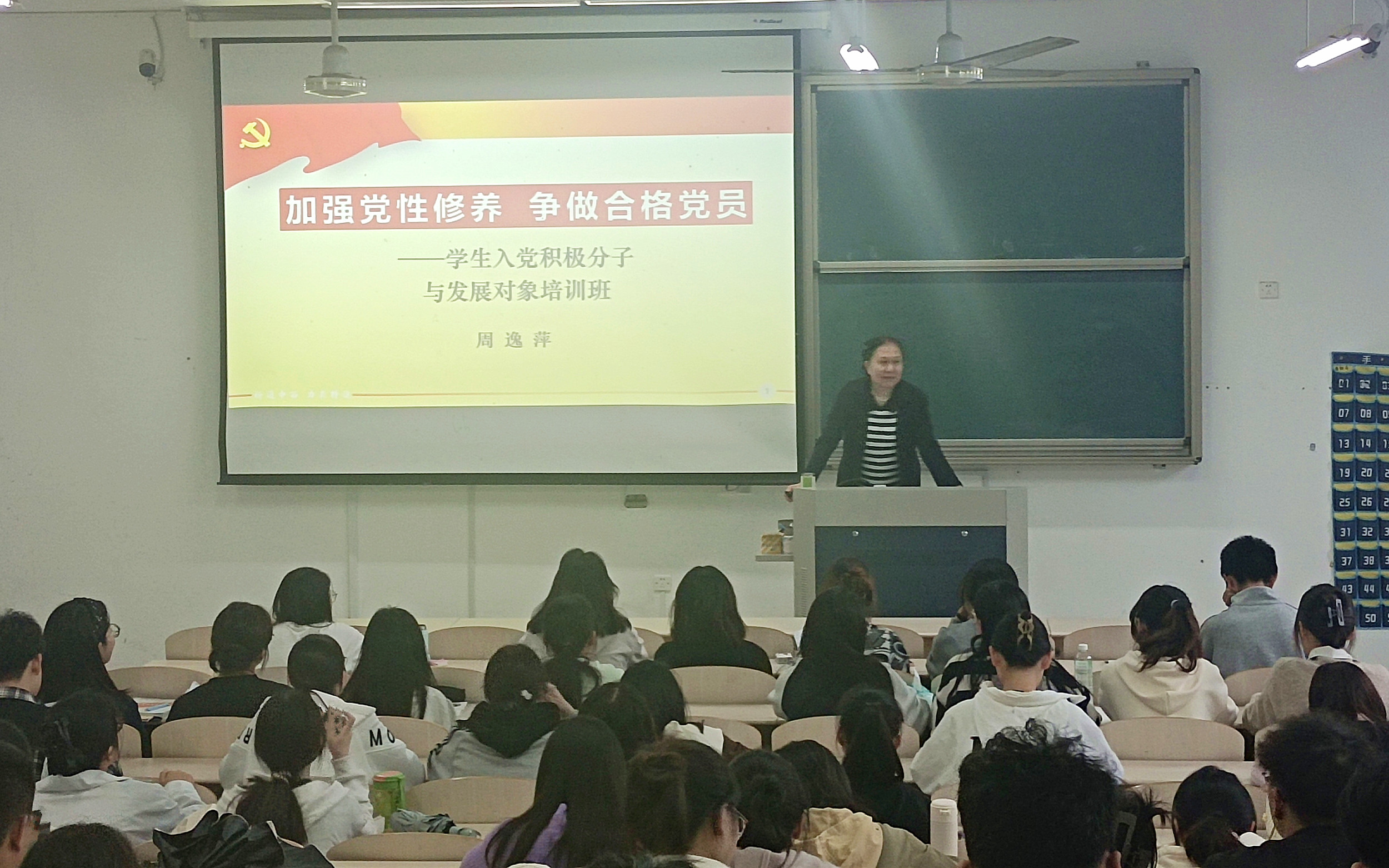 周逸萍围绕“加强党性修养,争做合格党员”的主题,阐述了党性修养的概念,和同学们强调了党性修养是合格党员的前提和基础,激励学员要加强理想信念教育。