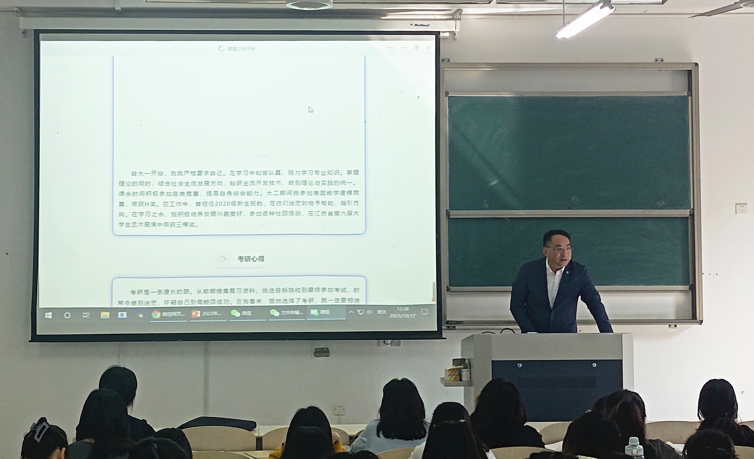 贲智勤从“什么是中国梦,以及怎样实现我的中国梦?”问题出发,结合校第四次党代会提出的“共同塑造一个在全省全国更有影响、更有地位的‘新通大’,一个在实现中华民族伟大复兴中更有作为的‘新通大’”,辅以生动的事例,向同学们讲解如何实现自己的中国梦,使学员们更加明确自己的目标和方向、责任和担当。