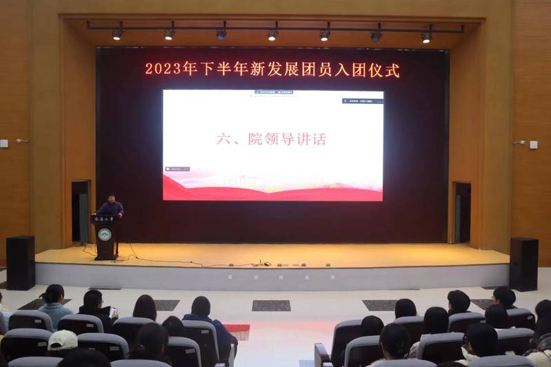 12月15日中午,我院在启东校区大学生活动中心隆重举行“高举团旗跟党走 激扬青春谱华章”2023年下半年新发展团员入团仪式。