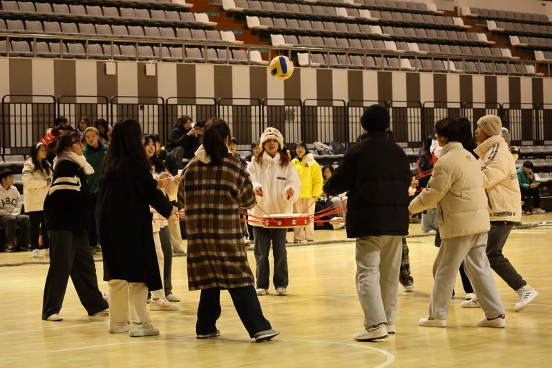 此前,各学部学生会、心协分会已组织初赛,最终根据不同项目成绩决出若干支队伍进入院级决赛。本次趣味运动会由拔河比赛、毛毛虫竞速比赛和同心击鼓颠球三个比赛构成。在拔河比赛中,两边队伍各不相让,纷纷使出浑身解数,力求将胜利收入囊中,紧绷的绳索仿佛是他们团结的象征;毛毛虫竞速比赛中,各队伍在整齐统一的口号中稳步前进,所有选手步调一致,劲往一处使,达到了事半功倍的效果;而同心击鼓颠球比赛中,参赛队伍们都展现出了极强的默契,一道道清脆的颠球声在比赛场馆内回荡,即使出现了失误也迅速进行调整,稳步前进顺利地完成了比赛。