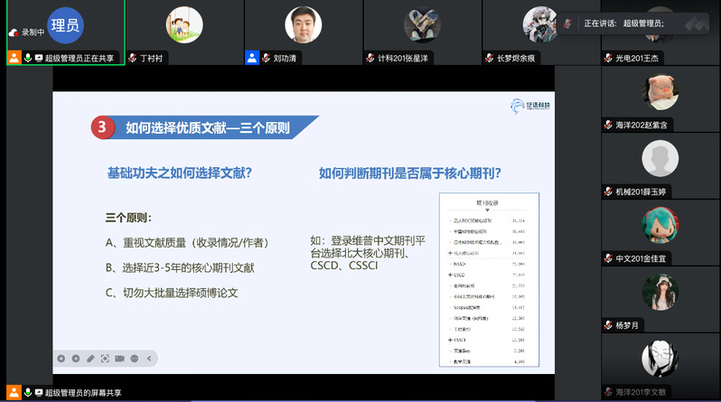 为提高毕业设计(论文)水平,促进学生综合能力提升,全面提高教育教学质量,3月18日,我院在线上举办了“毕业论文高效写作及学术规范”专题培训。本次培训特邀江苏省优秀毕业设计(论文)指导教师刘功清副教授、重庆泛语科技公司资深培训师肖丹为学生讲解。