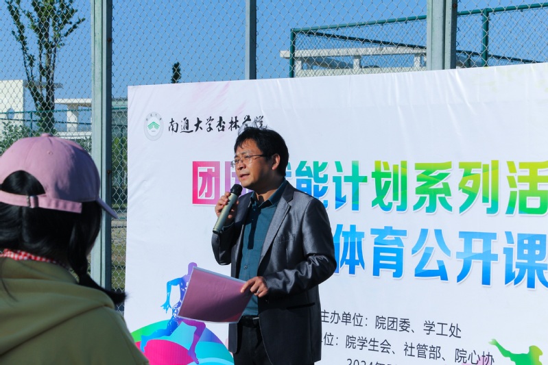 为增强学生的体质,促进学生主动参与,建立“我运动、我健康、我参与、我快乐”的理念,践行“健康第一,全面发展”的指导思想,达到“促德、辅智、健体”目的,5月8日下午,院团委、学工处于启东校区篮球场联合开展“团团赋能计划”系列活动之阳光体育公开课。学院(管委会)党委副书记兼副院长陈龙出席活动并发表讲话。