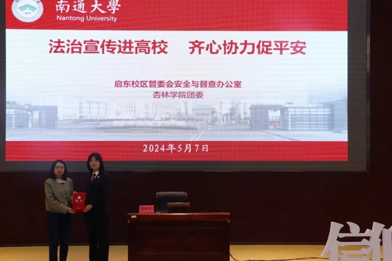 5月7日下午,管委会安全与督查办公室与学院团委共同举办主题为“法治宣传进高校 齐心协力促平安”的信仰公开课宣传讲座,活动特请启东市人民法院高新区人民法庭副庭长顾佳庆作专题主讲人。