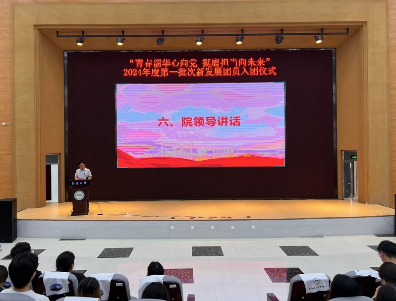 6月20日下午,我院于启东校区大学生活动中心报告厅开展“青春韶华心向党 挺膺担当向未来”2024年度第一批次新发展团员入团仪式,学院(管委会)党委副书记兼副院长陈龙出席活动,并发表讲话。