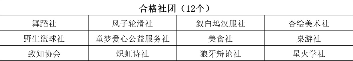 现将学生社团中期考核结果公示如下: