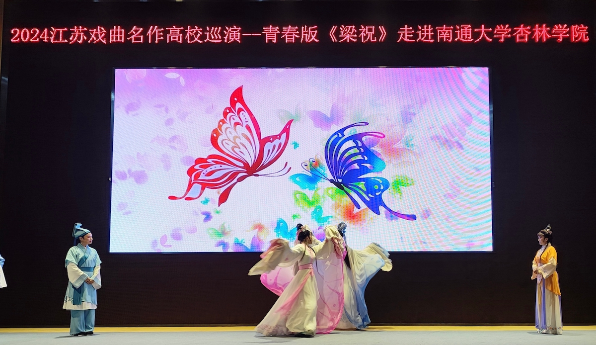 10月15日,我院在大学生活动中心举办高雅艺术进校园活动。江苏省文化发展基金会携手南京市越剧团,越剧青春版《梁祝》为同学们带来了一场视听盛宴。