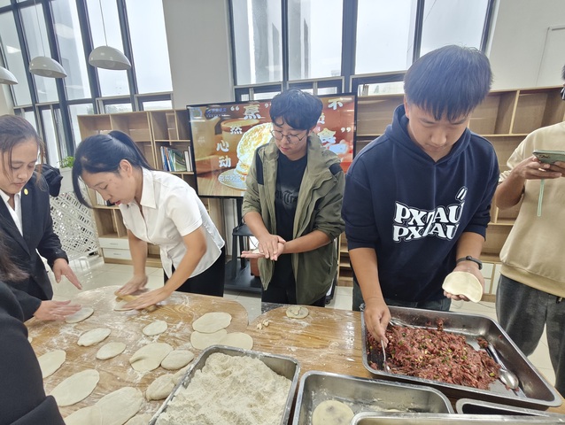 此次活动精心准备了猪肉、牛肉及韭菜等多种口味的馅饼,通过师生们的亲身实践,深刻体验到了传统面食背后悠久而丰富的文化底蕴。此次活动不仅彰显了学院“以生为本、服务育人”的教育理念,同时也为远离家乡的外地学子带来了深切的关怀与温暖。
