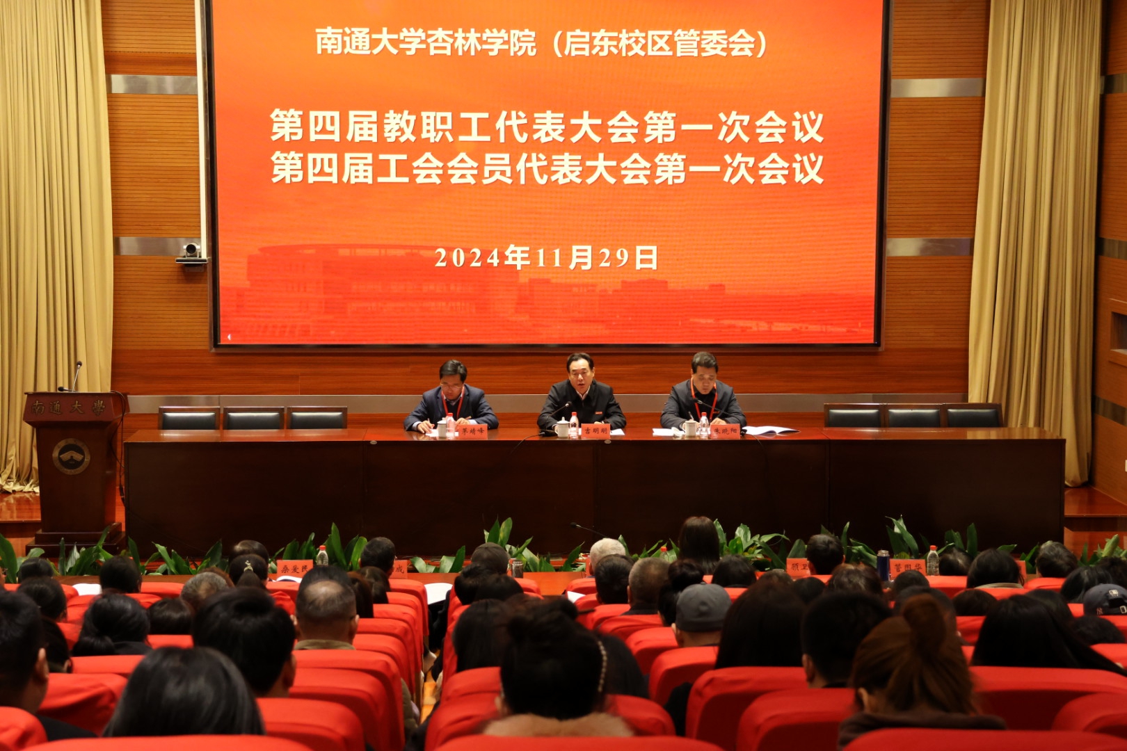 学院(管委会)党委书记、启东校区管委会常务副主任朱晓阳致闭幕词。他对推进学院(管委会)高质量发展提出三点希望:一是锚定目标、永葆信心,在推进立德树人上务实功,统筹做好“立心铸魂”和“强教强师”两篇文章;二是驰而不息、久久为功,在深化改革创新上出实招,统筹做好“规范有序”和“激发活力”两篇文章;三是胸怀大局、同向发力,在服务国家地方上求实效,统筹做好“引进来”和“走出去”两篇文章。他勉励大家在新起点上不忘初心、不负使命,在新征程中凝心聚力、砥砺前行,为教育强国建设贡献力量,为学校、学院高质量发展接续奋斗。