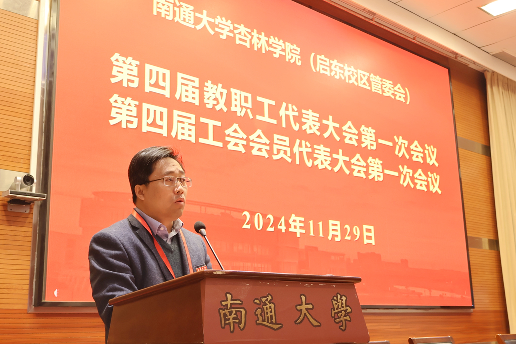 吉明明代表学校和杏林学院理事会向大会召开表示祝贺,向各位代表和全体工作人员表示问候。他指出,近年来在全体教职工的努力下,学院(管委会)的发展蒸蒸日上,既提升了自身发展水平,也有力地支撑了学校发展。当前和今后一个时期,要坚定不移地走内涵式发展之路,全面深化综合改革,努力提升人才培养质量,加快实现高质量发展。围绕启东校区和杏林学院办学发展,吉明明提出三点要求:一是要坚持正确政治方向,忠诚党的教育事业,引领广大教职工围绕学校、学院中心大局,紧扣高质量发展目标要求,勠力同心,奋楫笃行;二是要强化干事创业热情,踊跃投身改革发展,要充分激发和调动广大教职工的积极性、主动性、创造性,积极投身学校、学院改革发展事业,推动学校、学院各项决策部署落地见效;三是要发挥桥梁纽带作用,汇聚团结奋斗合力,为学校、学院事业发展凝聚共识、集聚力量。