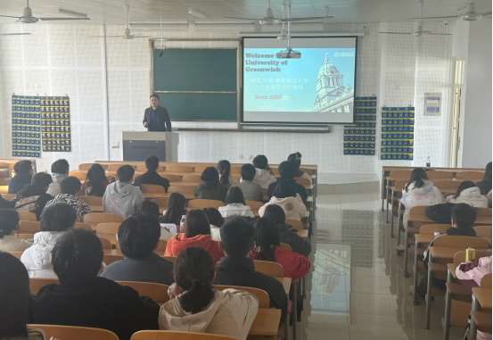 会上,梁老师首先介绍了英国格林威治大学地概况,随后针对与我院合作地“3+1”本硕连读项目,以及各个学部和专业,有重点、有方向地详细介绍了英国格林威治大学硕士课程学习安排,入学条件、学费以及住宿等相关内容。