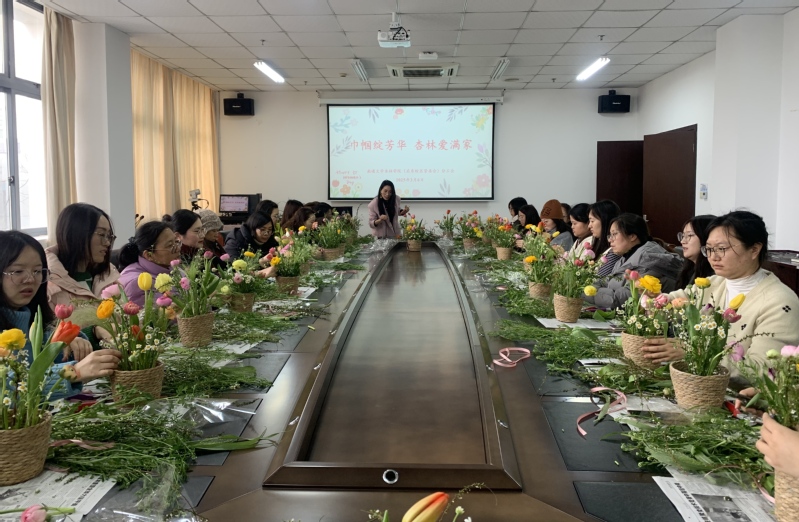 春潮涌动,活力迸发。在第115个“三八”国际劳动妇女节来临之际,为了丰富女教工的精神文化生活,提升艺术修养和生活情趣,3月5日-3月6日,学院(管委会)分工会以“巾帼绽芳华,杏林爱满家”为主题,分别在啬园校区和启东校区开展了温馨雅致的花艺沙龙活动。学院副院长邵春燕出席活动并讲话。