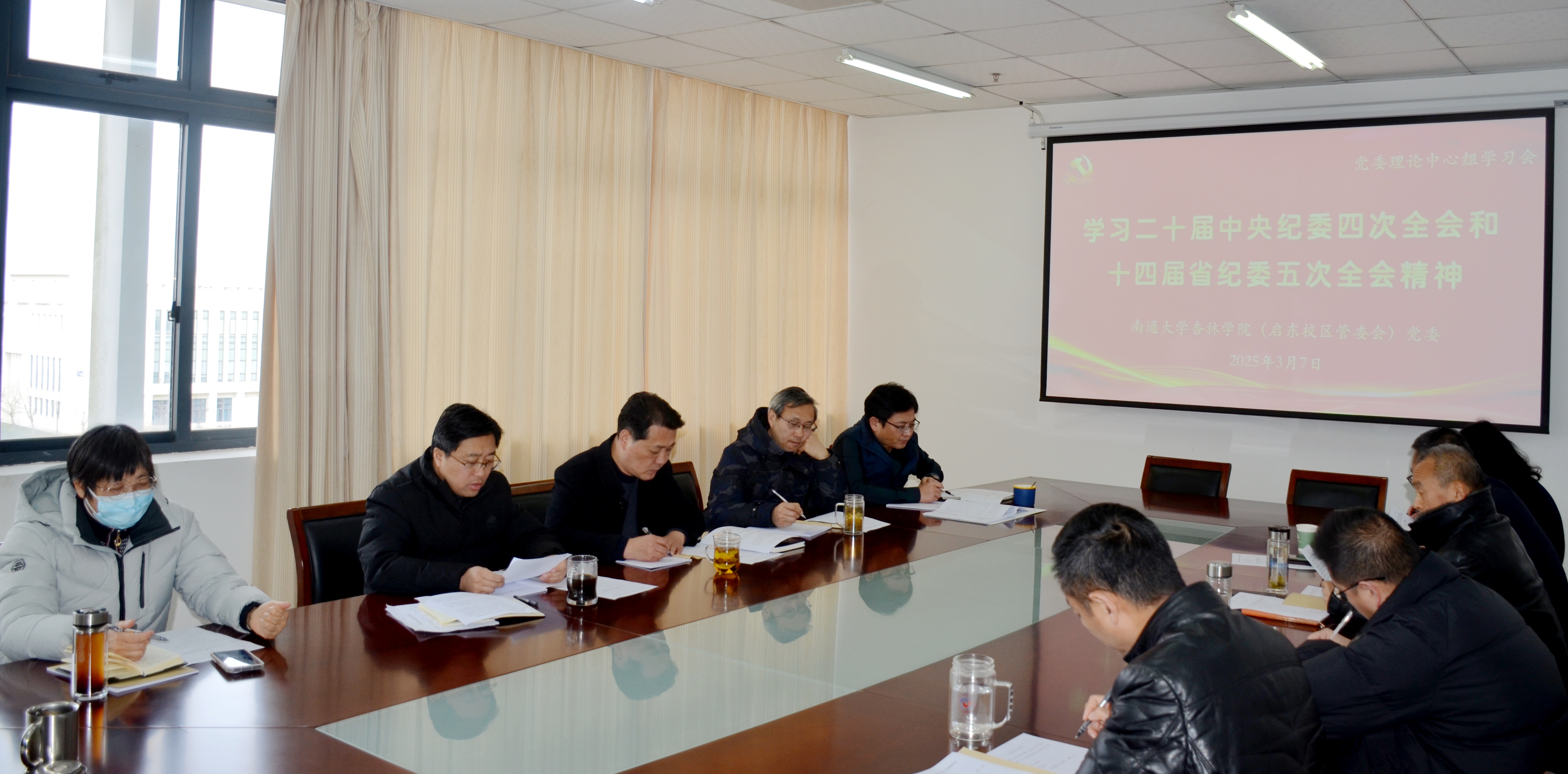3月7日下午,学院(管委会)党委召开理论学习中心组集中学习会,学习习近平总书记中央纪委四次全会重要讲话精神,并传达学习十四届省纪委五次全会精神。学院(管委会)党委书记、启东校区管委会常务副主任朱晓阳主持会议并讲话。