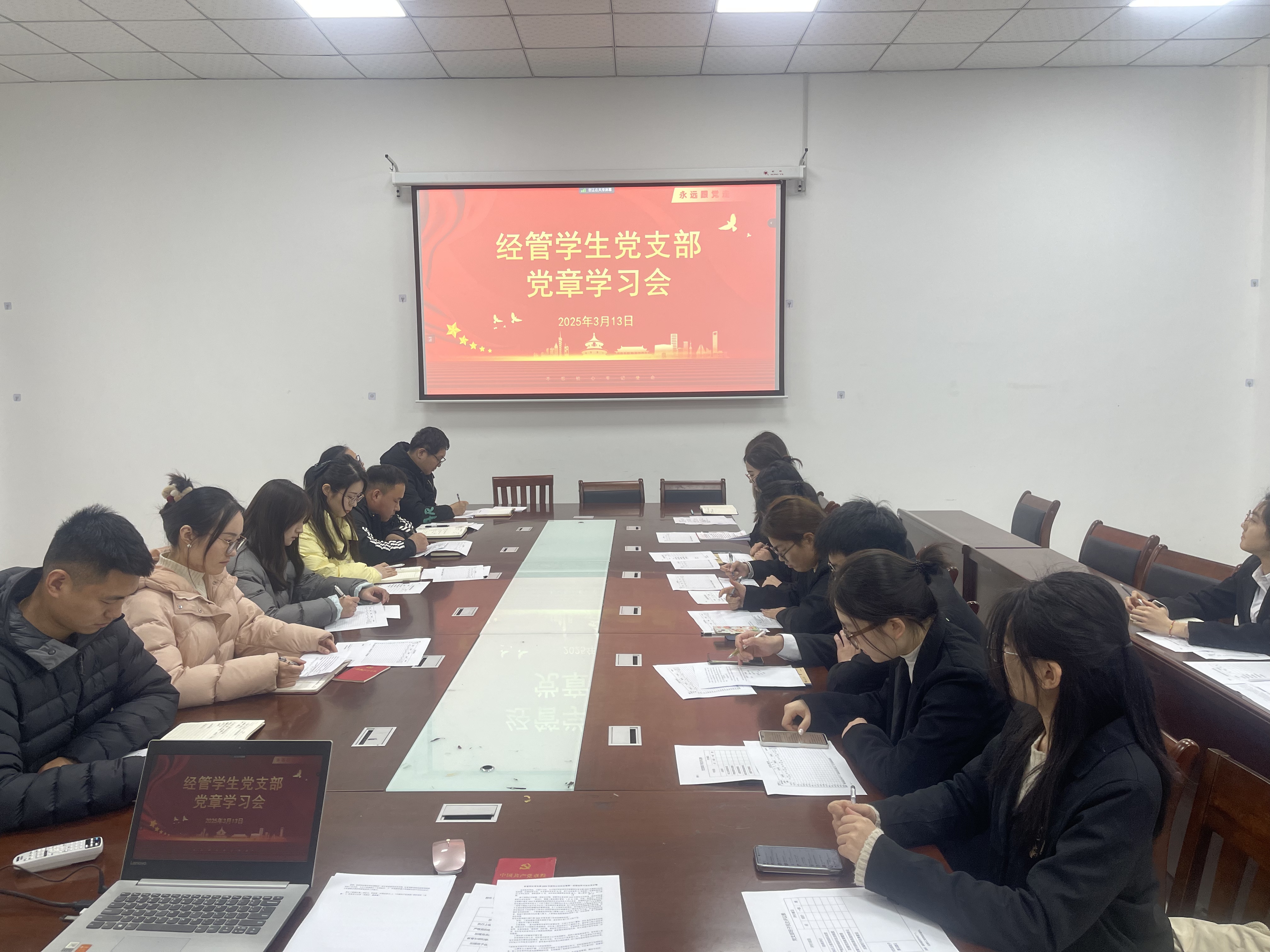 3月13日下午,经管学部教工党支部在啬园校区召开中国共产党章程专题学习会。会议由“双带头人”教师党支部书记、学部副主任范赟主持,学院副院长莫闲参会。全体党员通过集中学习、交流研讨等形式,推动党章学习与教育教学工作深度融合。