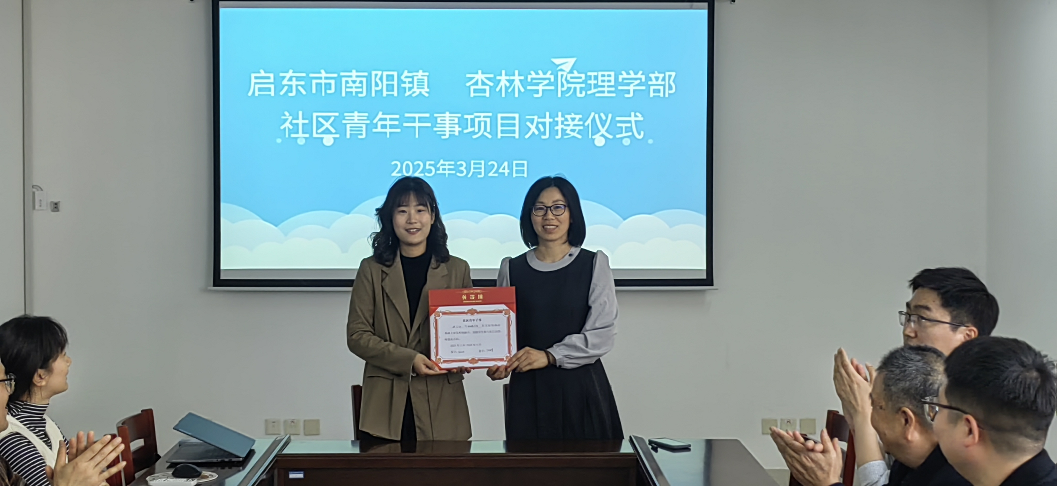 为深入学习贯彻习近平总书记关于基层治理的重要指示批示精神,认真落实江苏省基层治理“为马赋能”重点任务,扎实开展高校青年志愿者社区志愿服务行动,引导青年学生走进基层,积极参与和服务基层社会治理,3月24日,南通大学杏林学院理学部与启东市南阳镇团委在综合楼B210会议室签订社区青年干事项目协议,理学部党总支书记、学部主任纪宪明,启东市南阳镇团委书记陶凌霄,理学部党总支副书记宋婉婉及其他代表出席了活动。