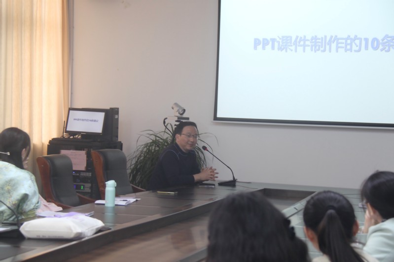 王雪飞分享了制作PPT 课件经验和建议。他强调在制作PPT课件时,应选择合适的PPT画幅、板式、字体,动画效果,注重布局排列,合理借助设计工具,为老师们制作课件指明方向,以提升课件质量。