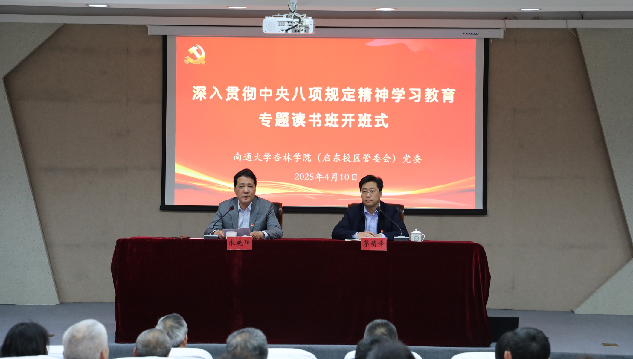 4月10日下午,学院(管委会)在启东校区图书馆102报告厅举行深入贯彻中央八项规定精神学习教育专题读书班开班式,学院(管委会)党委书记、启东校区管委会常务副主任朱晓阳出席会议并讲话,学院(管委会)党委副书记、院长茅靖峰主持会议并布置了学院(管委会)专题读书班的实施方案。