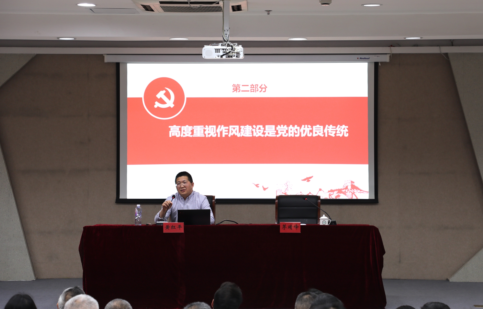 南通大学马克思主义学院教授、硕士生导师黄红平作了题为《中央八项规定精神解读——为弛而不息推进全面从严治党提供坚强作风保障》的专题辅导报告,他从“贯彻中央八项规定精神重大意义、高度重视作风建设是党的优良传统、八项规定是作风建设的切入口和动员令、学精神要义贵在坚持党性党风党纪一起抓”四个方面做了关于中央八项规定精神的辅导报告。