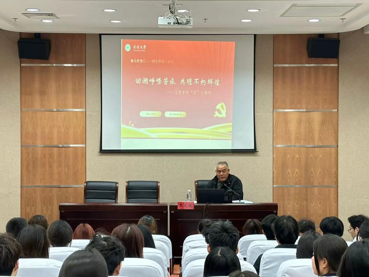 为深入学习党史,感悟先辈奋斗精神,鉴往知来,凝聚新时代奋进力量。4月10日中午,信息学部于图书馆101报告厅开展“回溯峥嵘苦旅,共瞻不朽辉煌”青马思想汇—师生共读一本书活动,特邀信息学部党建组织员王文俊老师做专题分享,软件242苗天硕主持活动。