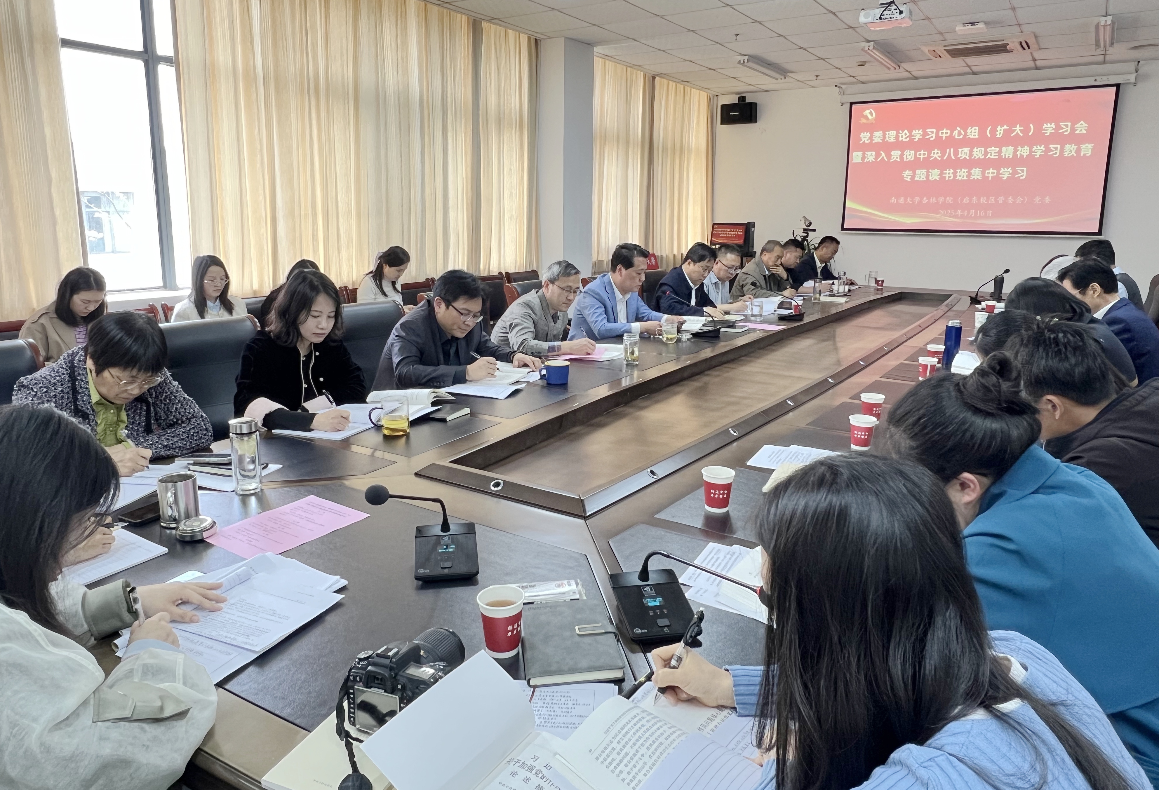 4月16日上午,学院(管委会)在启东校区综合楼201会议室举行党委理论学习中心组(扩大)学习会暨深入贯彻中央八项规定精神学习教育专题读书班集中学习,学习研讨《习近平关于加强党的作风建设论述摘编》第一、二、三专题。学院(管委会)党委书记、启东校区管委会常务副主任朱晓阳主持会议。学院(管委会)党委理论学习中心组全体成员参加学习。