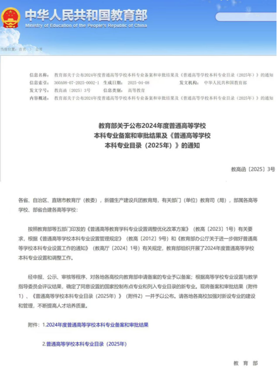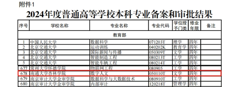 近日,教育部印发《教育部关于公布2024年度普通高等学校本科专业备案和审批结果及普通高等学校本科专业目录(2025年)的通知》(教高函〔2025〕3号),我院申报的数字人文(专业代码:050110T,学科门类:“文学”,学制:四年)新专业获批设置,此次获批的专业拟列入学院2025年招生计划。
