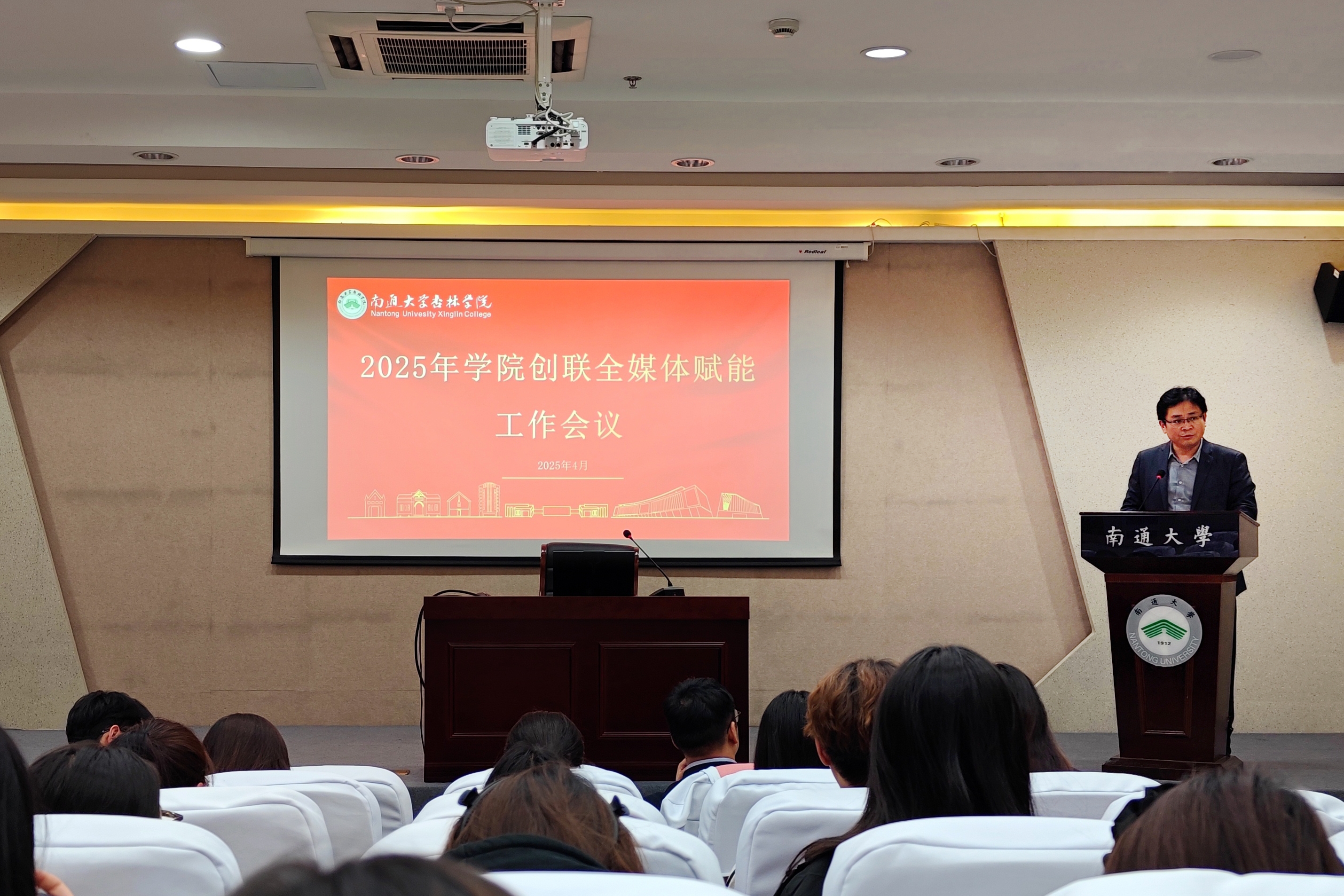 4月27日晚,我院在启东校区图书馆报告厅102会议室召开创联全媒体赋能工作会议。学院(管委会)副书记兼副院长陈龙出席会议并作工作部署。