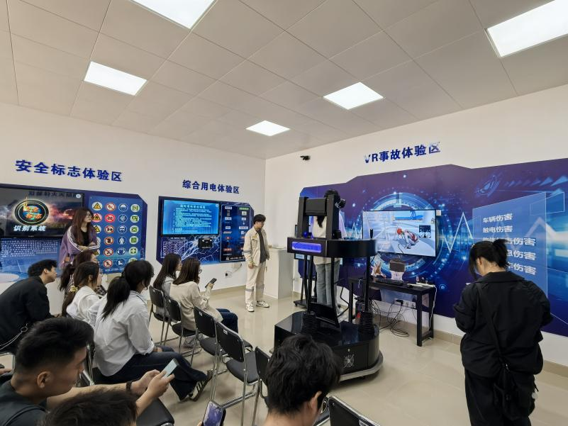 师生们在企业工作人员引导下开启“探・向海征程”,依次走访创梦启航馆、青春安全会、匠心质量坊等特色场地。通过沉浸式展陈设计,师生们沿着企业发展的时间线,观摩了深海钻探储油平台、海上风电安装船、储卸油平台等大国重器的等比微缩模型。讲解员结合视频演示,详解企业如何突破国外技术封锁、实现关键核心技术自主可控的攻关历程。讲解员启动VR安全作业模拟系统,学生们戴上设备“沉浸式”进入船舶高空焊接、密闭舱室作业等虚拟场景,切身感受规范操作在高危环境中的重要性。
