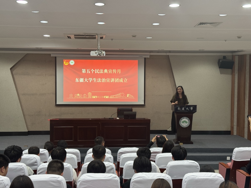 在第五个民法典宣传月来临之际,5月16日下午,我院在启东校区图书馆报告厅举办法治宣传进校园活动。启东市司法局副局长郁欢欢、启东市法学会专职副会长高峰、启东市人民法院高新技术产业开发区人民法庭副庭长顾佳庆、员额法官王晓龙等出席活动。